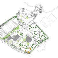 Die Gartenlandschaft ist geprägt durch einen Jahrzehnte alten Baumbestand, der allerdings aufgrund teilweiser Überalterung der Gehölze neu interpretiert werden musste. Ersatzbaumpflanzungen mit großkronigen Parkbäumen werden die ausgefallenen Bäume ersetzen und für einen vielfältigen Gehölzbestand in der Zukunft sorgen. Im Entwurf entstand eine Abfolge von offenen Rasenflächen, die im hinteren Gartenbereich in eine waldartige Parklandschaft übergeht. Der Reiz der Anlage, der sich auf den Rundwegen durch den Garten erschließt, liegt im Wechselspiel aus Licht und Schatten, dem Kontrast verschiedenfarbiger Laubgehölze - die sich vor allem im Herbst als prächtiges Farbenfeuer darbieten - und den wechselnden Blühaspekten der naturnahen Gartenbereiche über das Jahr hinweg.
