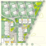 Die Parklandschaft im östlichen Teil im Bereich der Geschossbauten ist von stärker urbanem Charakter, mit zentral gelegenen Gemeinschaftsplätzen und Spielplätzen, bietet aber auch Flächen für Mieter- und Gemeinschaftsgärten. Mit Hilfe von vegetabilen Elementen, Materialien und Möblierung wird der Konnex beider Teile hergestellt und ein funktionierendes, zusammenhängendes Ganzes geschaffen.