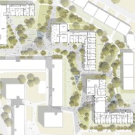 - Schaffung lebendiger Freiräume durch differenzierte Angebote im Erdgeschoss mit bepflanzten Grünflächen, Rasen- und Wiesenflächen, sowie befestigten Platzräumen und Spielangeboten